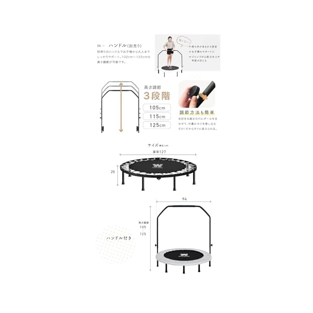 BARWING(バーウィング) 新モデル登場 トランポリン 8本脚 静音 耐荷重150kg 子供用 大人用 クリスマス 子供 ダイエット クッション 折りたたみ 大きい折り畳み おりたたみ カバー トレーニング (7.BIGモデル ミルキーベージュ)