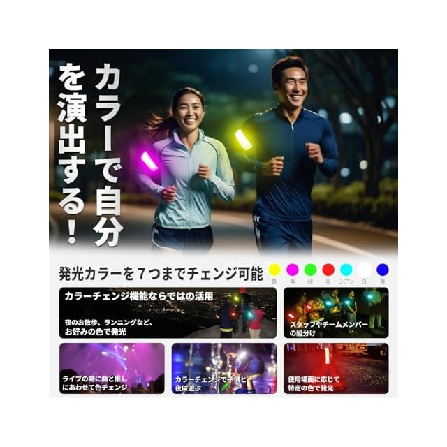 OnePro ランニング ライト【7カラーチェンジ 簡単装着】 Type-C充電式 LEDアームバンド 防水 夜間 散歩 ジョギング ウォーキング 反射バンド 反射板 光る腕輪 夜間の事故防止 ライブ 推し活 (7色チェンジ)