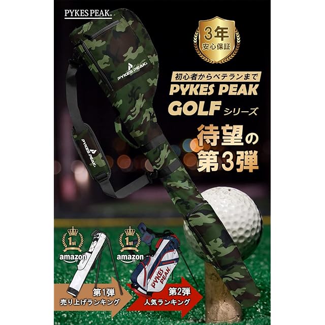 PYKES PEAK パイクスピーク 【 折畳み コンパクト】 クラブケース ゴルフ 8本収納 ゴルフバッグ 打ちっぱなし 超軽量 練習用 3ポケット 全10色 440g【カモフラージュ1】
