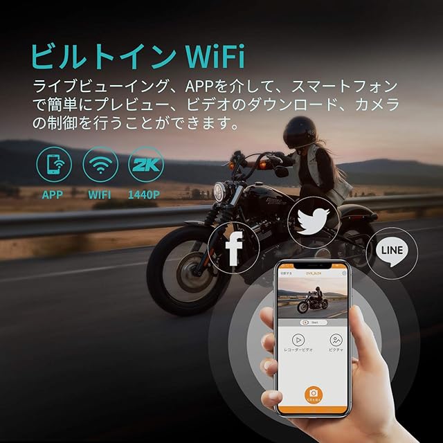 「スマホ連携アプリで簡単操作」ドライブレコーダーバイク用はWiFiを搭載しており、専用アプリを通じてスマートフォンと連携できます。リアルタイム映像の確認や動画のダウンロードが手軽にでき、快適に操作できます。また、専用アプリを使用すれば、リアルタイム映像の視聴、録画画面の角度調整、撮影した動画のスマートフォンへのダウンロードがいつでも可能です。ドラレコバイクスマートな使い心地で、バイクライフがもっと楽しくなります。