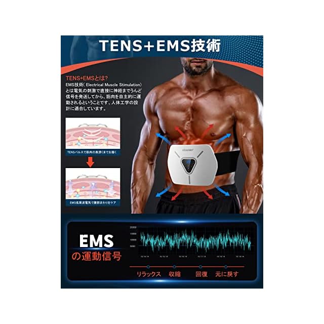 ♥【新機能追加&新トレーニング体験】「EMS刺激」だけでは物足りない。腹筋ベルトは、従来のデザインにとらわれず、TENSとEMSの両方の周波数のパルス波を組み合わせることで、皮膚の表面だけでなく、内部筋肉を完全に振動させ、広範囲かつ集中的な運動の効果を可能にしました。EMSの運動効率は伝統的な運動より効率で便利!カバー範囲も従来の60倍である。柔らかなシリコンの材質、通気性がよく、汗が溜まらない、肌触りが良いです。