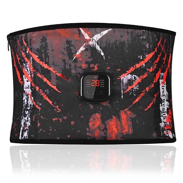 【2025全新モデル 洗えEMS腹筋ベルト】ジェルシート不要 8種類モード 30段階強度 柔らかい軽い生地 USB充電式 液晶表示 腹筋エクササイズ 腹筋トレーニング器具 サイズ調節可能 男女兼用 日本語説明(レッド)