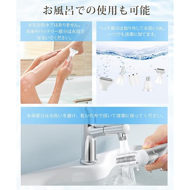 ★【丸洗いOK&ラクラクお手入れ】本レディースシェーバー は 眉毛カッター でもあり、軽量設計と手にしっかり馴染むエルゴノミックグリップで、長時間の使用でも手が疲れにくい 眉毛剃り 電動 です。 電気シェーバー 女性用 で、防水設計のため、使用後は刃やアタッチメントを簡単に取り外して洗浄可能な vio カミソリ です。 深ぞり フェイスシェーバー レディース が付属のクリーニングブラシで毛くずを落とし、水でサッとすすぐだけで清潔を保てます。お風呂場や洗面所など、水まわりでも安心してお使いいただける 電気 シェーバー です。