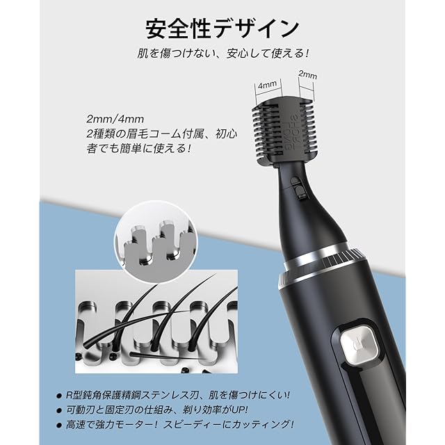 【多機能電動鼻毛カッター&肌に優しくて安心&&防塵カバー】電動鼻毛カッターに1つのカッターヘッドを搭載し、反時計回りに少しひねって緩めて外せて、簡単に交換できます。鼻毛だけでなく、耳毛もケアできる多機能なエチケットカッターです。しかも防塵カバーを搭載し、ごみがヘッド内部へ入らないように防止します。同時に、ヘッド部分が圧迫されて衝突すること、ショックを防止し、より良い保護の役割を果たします。360度回転するダブルロータリーブレードを採用。鼻毛を引っ張らないようにしながら、どの方向の鼻毛もかんたんに処理できる安全仕様です。眉毛 鼻毛シェーバー メンズ人間工学に基づいた3Dデザインのトリマーは、安全性を考慮したダブルブレードを内蔵し、鼻腔に密着して鼻毛を素早くトリミングします。鼻毛カッター メンズご使用後は内部までかんたんきれいに洗うことが可能です。