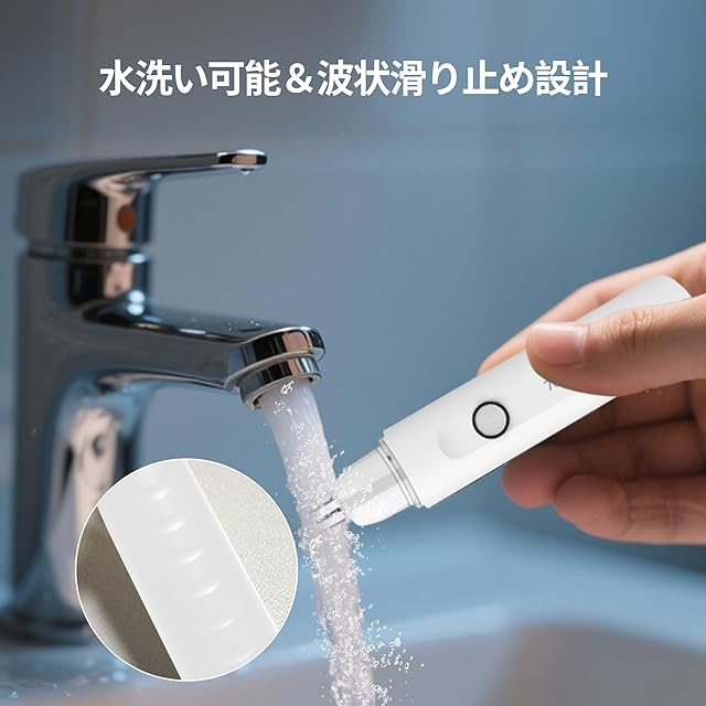 本はなげカッターはIPX防水仕様を採用しており、使用後の水洗いが可能です。ただし充電端子部分が濡らさないようご注意ください。刃部分は簡単に着脱可能で、付属の専用クリーニングブラシを使えば隅々まで清掃できます。使用後は防塵キャップを閉めて常に衛生的な状態を保てます。