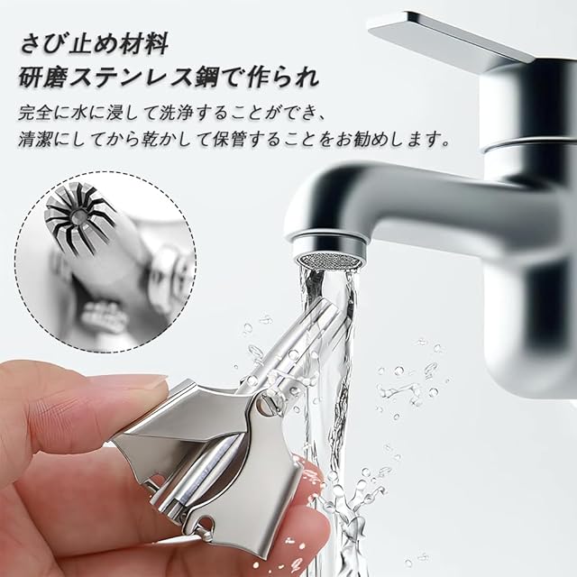 【快適な体験感】手動式の鼻毛トリマーは電池不要で、発熱も鼻毛も挟まない。12個の両刃ブレード技術を採用することで、無痛で快適なトリミング体験を完璧に表現することができます。