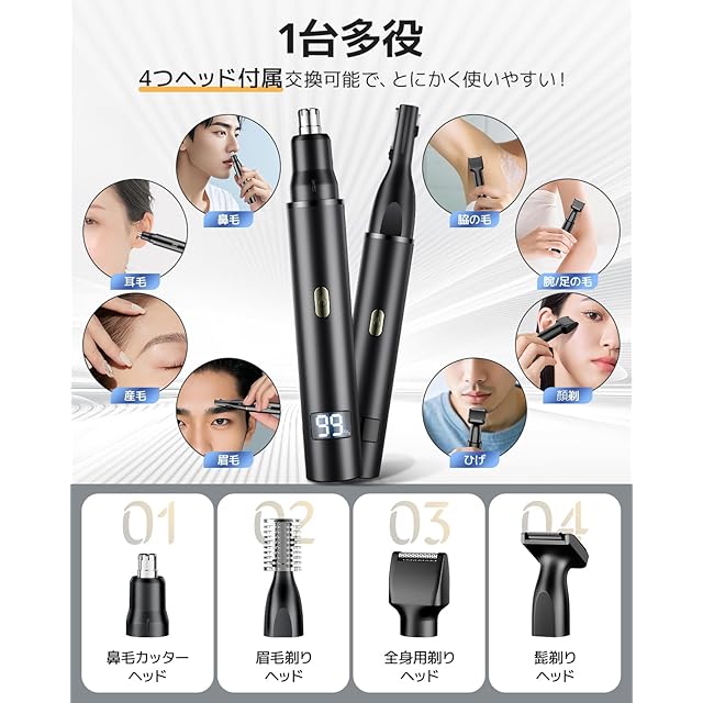 鼻毛カッター メンズ 【2025年新モデル・1台4役】 眉毛シェーバー レディース エチケット 多機能 はな毛カッター USB-C充電式 鼻毛トリマー 肌に優しい 12000回高速回転 長さ調整可能 軽量 コンパクト 水洗い可 1台多役 持ち運び便利 低騒音 電動シェーバー 男性 電動式 電動式カッター エチケットカッター メンズ レディース 男女兼用 掃除用ブラシ付き (ブラック)