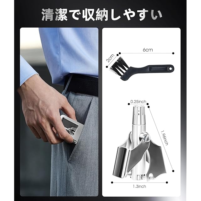 【防錆機能&全身水洗:メンテナンスが超簡単】防錆処理を施したこの手動鼻毛カッターは、全身水洗い可能。はな毛カッターとして使用後はさっと洗え、メンズ・レディースのどちらにもストレスフリーな鼻毛切りを提供。エチケットカッターとして、日々の手入れが驚くほど簡単です。
