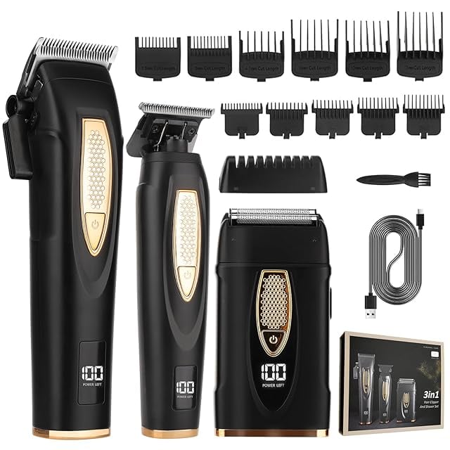 Soonsell メンズバリカン 電動バリカン 往復式シェーバー USB充電式 LCD表示 自動研磨 ヘアカッターセット ひげそり 低騒音 理髪美容セット 家庭 業務 ショートヘア用 セルフカット(ブラック)