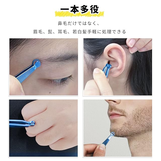 【一本多役】一本で複数の用途に使える便利なツールで、鼻毛の処理だけでなく、耳毛や眉毛の整えにも使用することができます。これにより、1つのカッターですべての処理を行うことができます。簡単で効率的な使い方です。