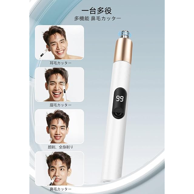 鼻毛カッター レディース メンズ 【2024新登場·4色あり·替刃付き】耳 鼻毛切り LCD電力量表示 水洗い可能 鼻毛カッター エチケットカッター USB Type-C充電式 低騒音 小型 持ち運び便利 おしゃれ 男女兼用 若い男女に最適 (白)