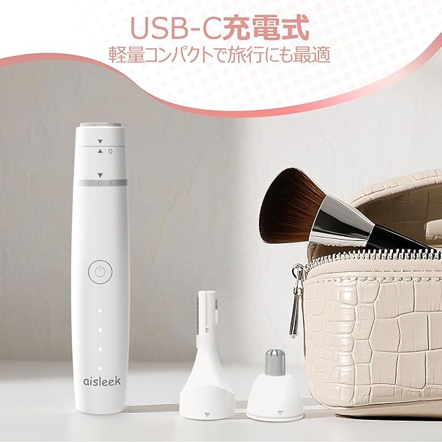 aisleek レディースシェーバー 3in1 電動フェイスシェーバー 鼻毛カッター 眉毛シェーバー フェイストリマー 女性用 顔剃り 産毛ケア 耳毛 USB-C充電式 持ち運び便利 ドライ剃り 痛くない