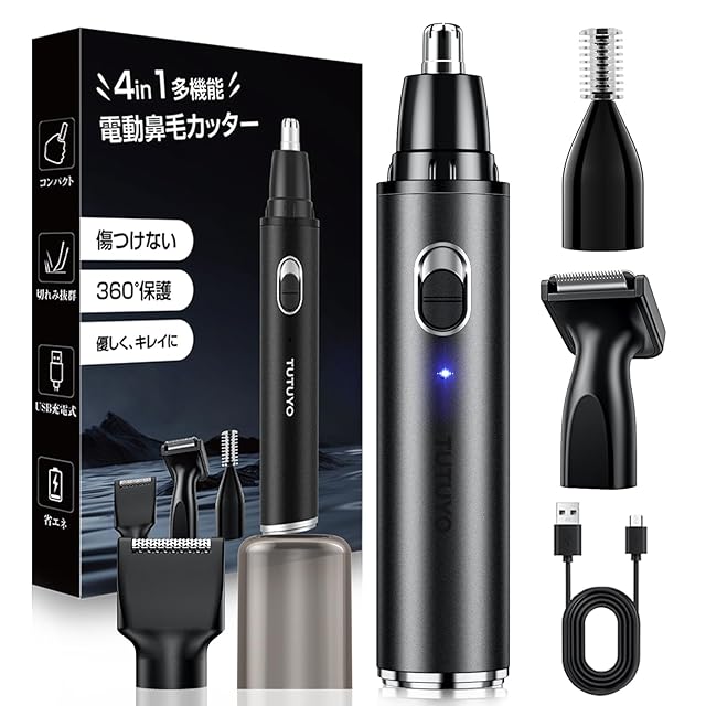 鼻毛カッター メンズ レディース 【2025年多機能・1台4役・水洗い可】 はな毛カッター 男性 エチケットカッター 充電式 眉毛カッター 眉毛シェーバー 耳 鼻毛切り 高速回転 軽量 コンパクト 持ち運び便利 低騒音 男女兼用 掃除用ブラシ付き (ブラック)
