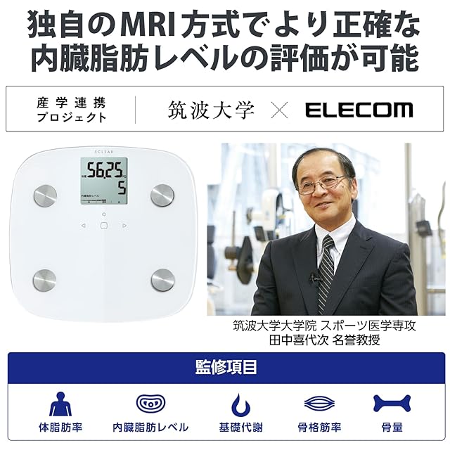 エレコム 体重計 体組成計 バックライト付 【 体重 体脂肪率 内臓脂肪レベル BMI 骨格筋率 骨量 基礎代謝 】 50g単位測定 エクリア ホワイト HCS-FS01XWH