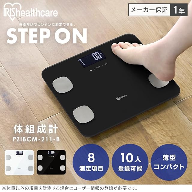 【web限定カラー】アイリスオーヤマ 体組成計 体重計 8項目測定 PZIBCM-211-B ブラック