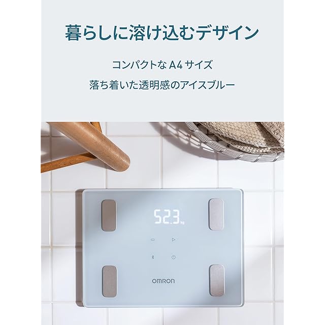 商品名:オムロン 体重 体組成計 カラダスキャン アイスブルー KRD-403T-B スマホ連動 データ自動転送 自動認識 乗るだけで測定開始 A4サイズのコンパクト設計 体脂肪率 BMI 骨格筋率