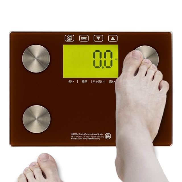 商品名:オーム電機 体重体組成計(強化ガラス製測定台/単4形×3本使用/ブラウン) HB-KG12H2-T