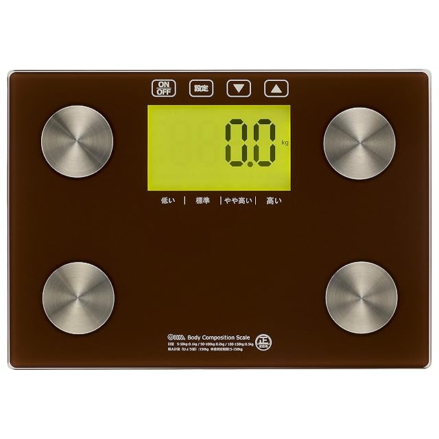 オーム電機 体重体組成計(強化ガラス製測定台/単4形×3本使用/ブラウン) HB-KG12H2-T