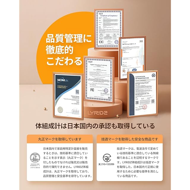 【なぜLYRIDZの8電極体組成計を選ぶの?】LYRIDZ体重・体組成計は、部位別ごとの体脂肪などを測れる体脂肪計で、老人、子供、妊婦、アスリートなど、様々な方に正確な体成分情報を提供します。普通な体重計は体重のみ計測し、ダイエットに重要な体脂肪率が測れない。そして、安価な体組成計は4電極で下肢のみを計測しデータが不正確。LYRIDZの8電極体組成計なら、安心、正確でボディーを管理します。