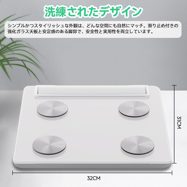 【洗練されたデザイン】シンプルかつスタイリッシュな外観は、どんな空間にも自然にマッチ。滑り止め付きの強化ガラス天板と安定感のある脚部で、安全性と実用性を両立しています。