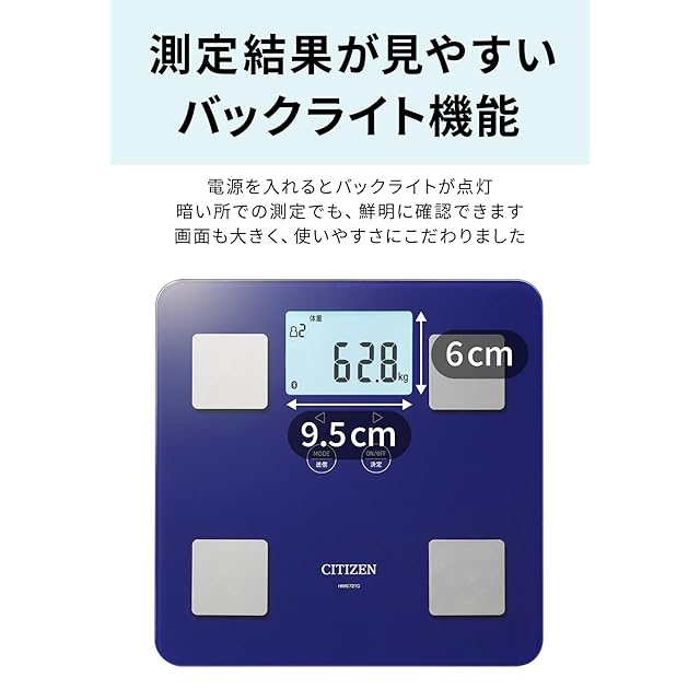 CITIZEN 体重計 スマホ連動 体組成計 グラフ管理 10項目 体脂肪率 筋トレで使える骨格筋率測定 HMS721C-DE 強化ガラス 採用 4人登録可 大型液晶 バックライト ヘルススキャン ディープネイビー シチズン