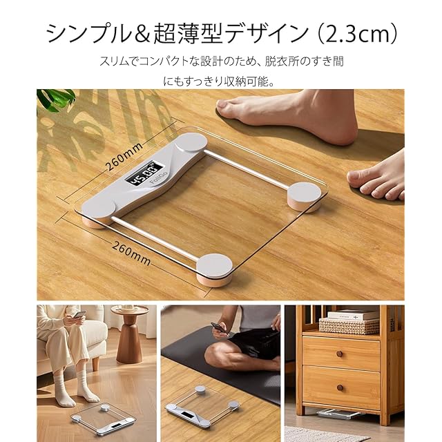 最新モデルの超薄型体重計がついに登場。スタイリッシュで場所を取らず、どんなインテリアにも馴染むデザインです。毎日の健康管理をスマートかつ快適にサポートします。