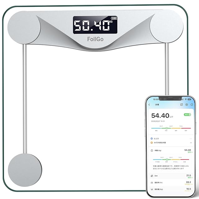 【スマホ連動体重計・専用アプリで自動データ管理】この体重計はBluetoothでiOS/Androidスマホと連動し、測定結果をアプリに自動保存。日/週/月単位のグラフで体重や体脂肪率の推移をわかりやすく確認できます。データが自動的に蓄積されるので、健康記録の手間を省き、ダイエットやボディメイクを継続的にサポートする次世代型体重計です。